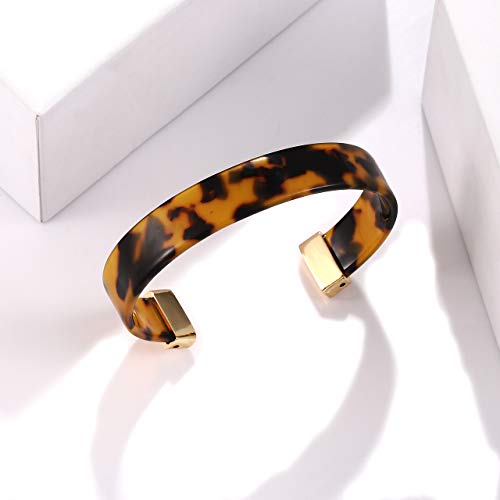 • 【FASHION DESIGN】--A contemporary cuff bracelet in a must-have tortoiseshell design, finished with eye-catching brass edges,Cuff bracelets are true attention getters and full of personality - just like you! You can wear them at your wrist, on your upper arm, enhance your most understated day to night looks with an ultra-contemporary touch.