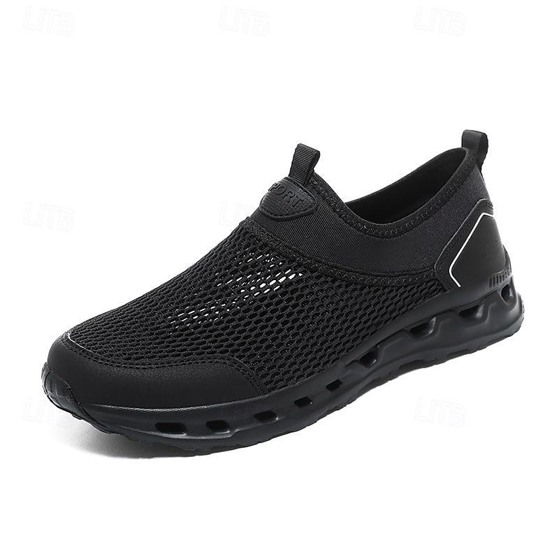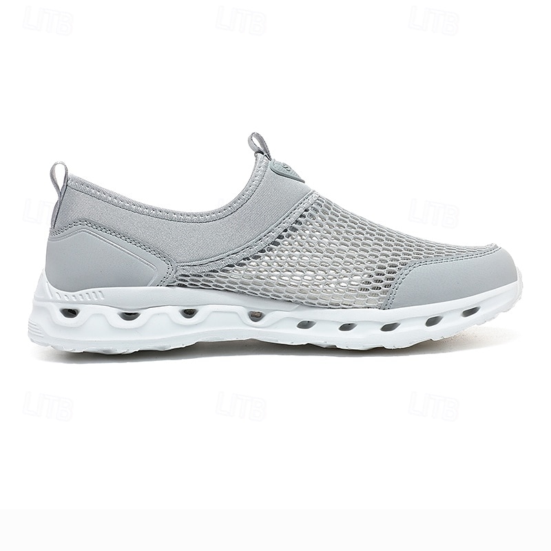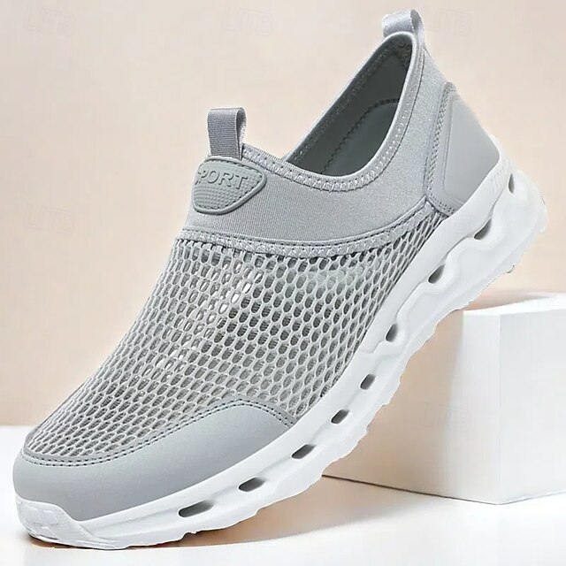 HOT ! Men's Grey Mesh Slip-On Sneakers with Cushioned Sole for Lightweight Comfort and Active Lifestyle