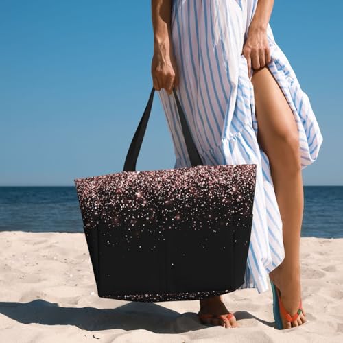 Rose Gold Glitter1 Print Beach Pool Bags Tote For Women Ladies Large Gym Tote Carry On Bag For Weekender Travel Waterproof 7