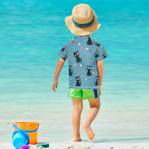 Boys Short Sleeve T-Shirts Cartoon Cat Heart Rashguard Kids Swim Shirts Sun UPF 50+ 4