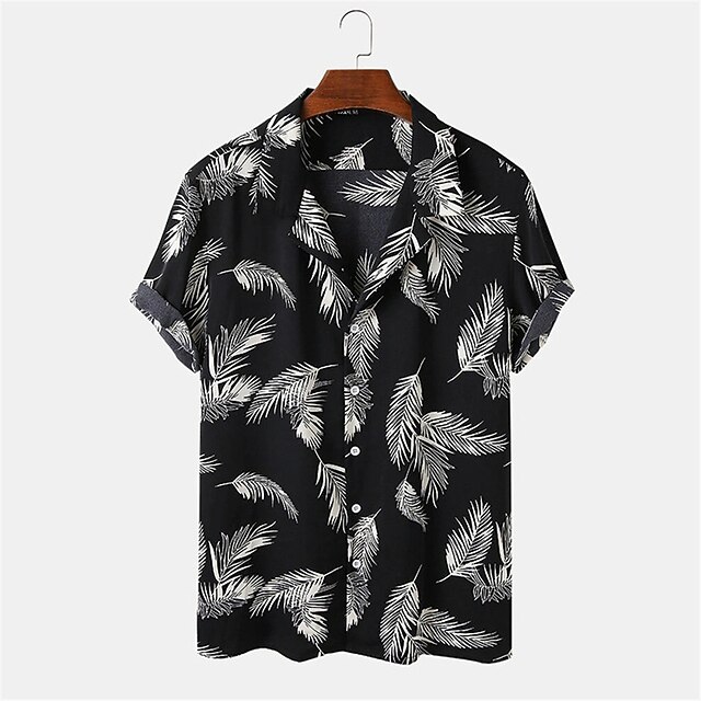 HOT ! Men's Feather Tropical Plants Shirt Summer Hawaiian Shirt Camp Collar Shirt Short Sleeve Shirt Turndown Hawaiian Designer Casual Outdoor Daily Black Yellow Other Prints S M L