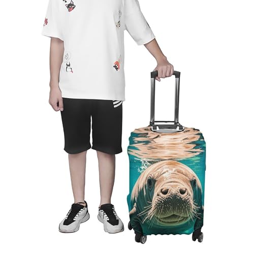 HOT ! Manatee Animals Luggage Cover Elastic Suitcase Protector Case Anti-Scratch Washable Baggage Covers Protector For Traveling, Aircraft Consignment L
