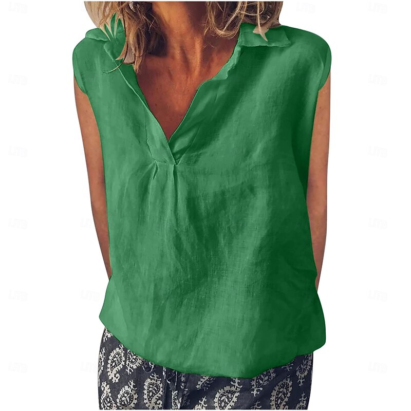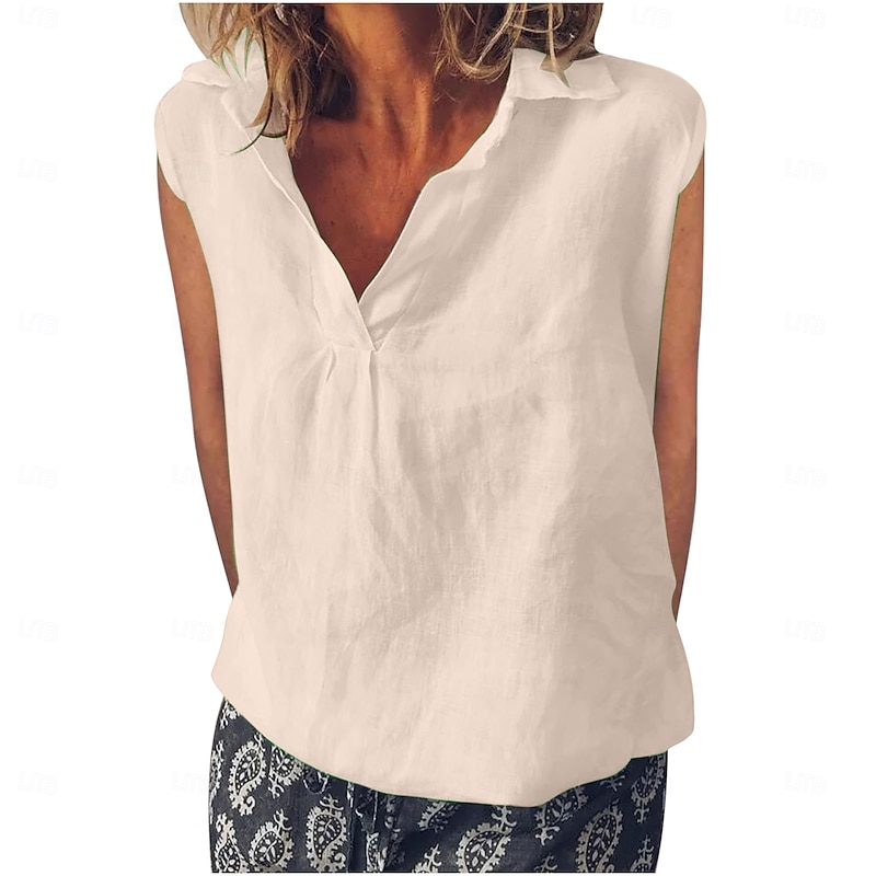 More information about Women's Cotton Linen Camisole Tank Top Solid Color Elegant Stylish Casual Sleeveless V Neck Regular Tops Daily Holiday White Pink Blue Green Summer Spring