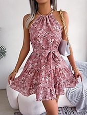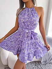More information about Women's Mini Dress Casual Dress Swing Dress Summer Dress Streetwear Vacation Holiday Beach Regular Fit Floral Sleeveless Halter Neck Pink Blue Purple Summer