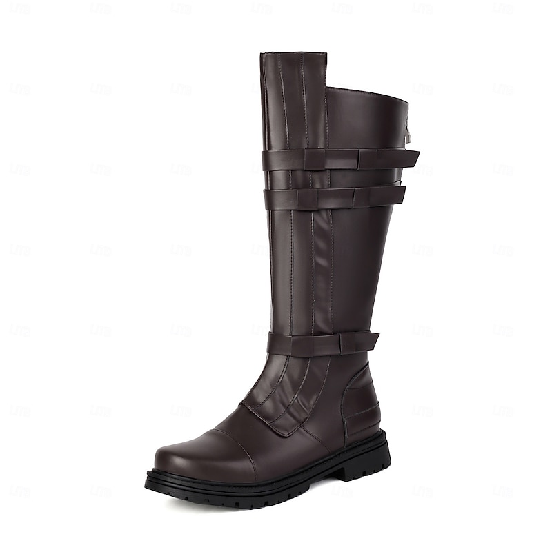 Men's Brown Strapped Knee-High Boots – Rugged Style with Bold Straps, Perfect for Casual Outings and Fashionable Street Wear 12