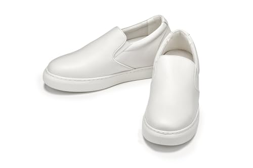 CALTO Men's Invisible Height Increasing Elevator Shoes - White Nappa Leather Slip-on Lightweight Casual Loafers - 2.6 Inches Taller - T1022 - Size 9 D(M) US 4