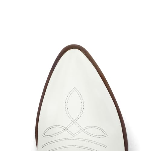 mysoft Women's Wide Calf Cowboy Boots Pull-On Mid-Calf Embroidered Pointed Toe Retro Western Boots 4
