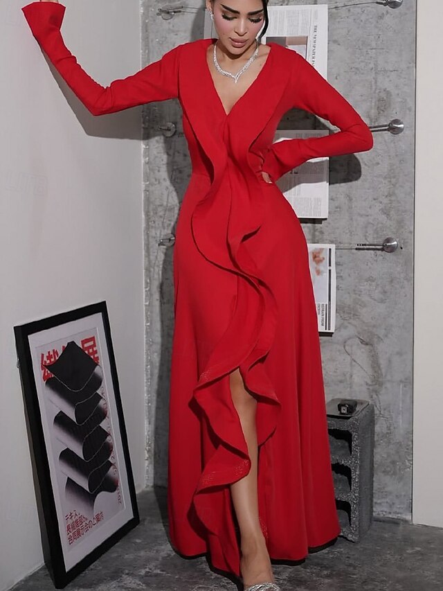 More information about Mermaid / Trumpet Evening Gown Elegant Dress Formal Wedding Floor Length Long Sleeve V Neck Stretch Crepe with Ruffles