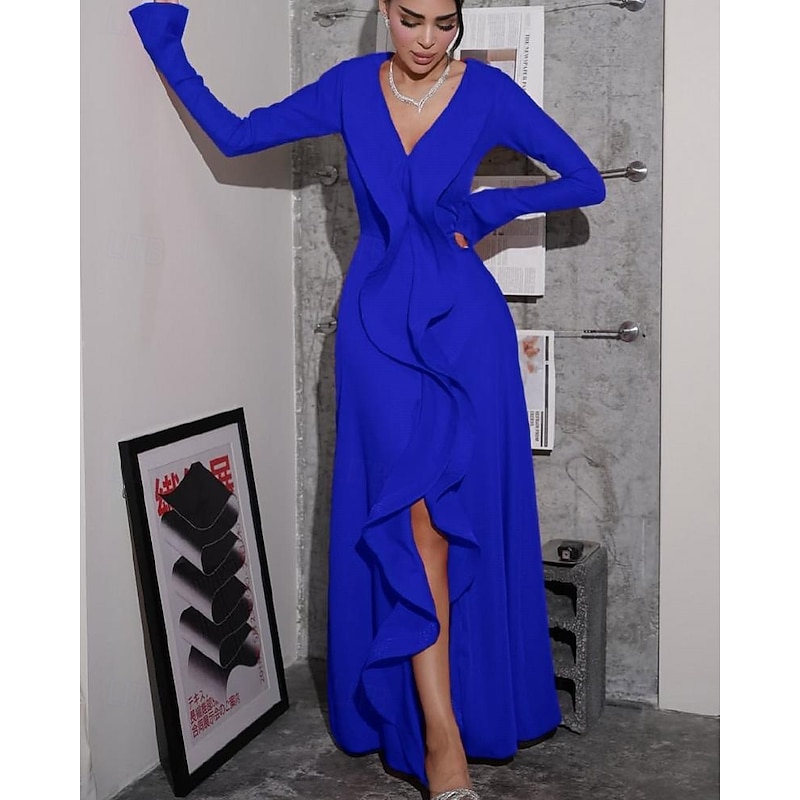 HOT ! Mermaid / Trumpet Evening Gown Elegant Dress Formal Wedding Floor Length Long Sleeve V Neck Stretch Crepe with Ruffles