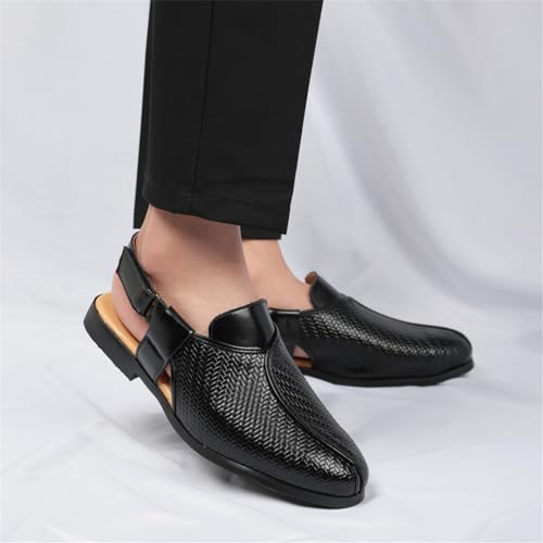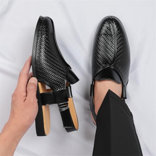 Men's Woven Leather Close-Toe Sandals with Adjustable Ankle Strap Breathable Lightweight Summer Arch Support Slip-On Flats Casual Dress Beach Walking Office Formal Work Shoes 6