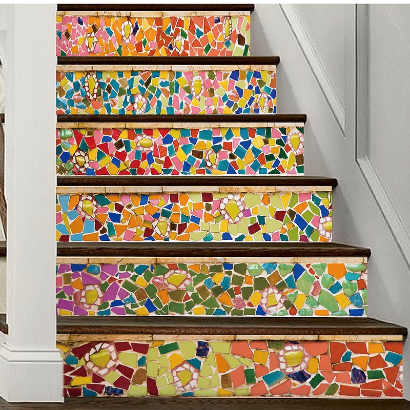 HOT ! 6pcs Wall Tile Stickers, Removable Stair Stickers, Self-Adhesive Step Ceramic Tiles, PVC Stair Wallpaper Stickers, Vinyl Staircase Home Decoration Size : 18x100cm
