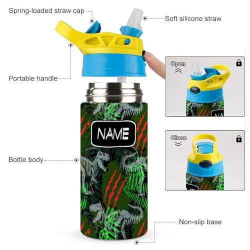 Custom 4Pcs Backpack Set with Lunch Bag Pencil Case Kids Water Bottle Add Your Name Personalized School Book Bags Customization Dinosaur Skeleton Claw Backpack for Girls Boys 5