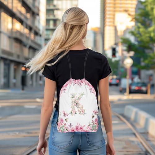 sought-after ! Erosebridal Initial A-Z Drawstring Backpack,13 x 15.7 inch Initial Letter K Drawstring Bag,Floral Monogrammed Draw String Back Bag,Romantic Rose Alphabet String Backpack for Sport Gym Swim