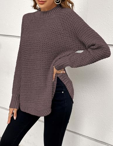 Womens Oversized Chunky Waffle Knit Solid Long Sweaters Fall 2024 Dressy Casual Cozy Crewneck Pullover Sweater 6