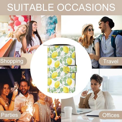 Green Leaf Yellow Lemon Pattern Leather Wallets Large Capacity Zipper Pocket Card Holder with ID Window, 19.7x11x3.5cm 6