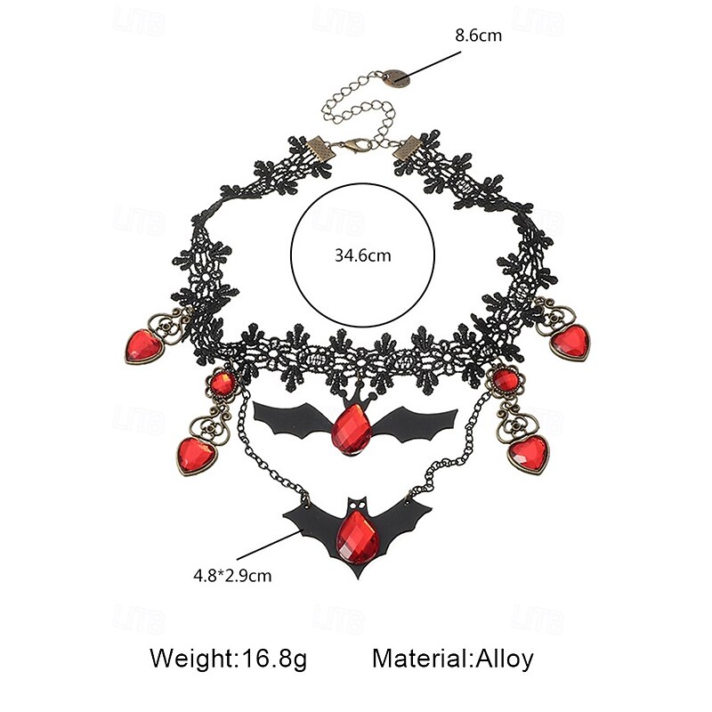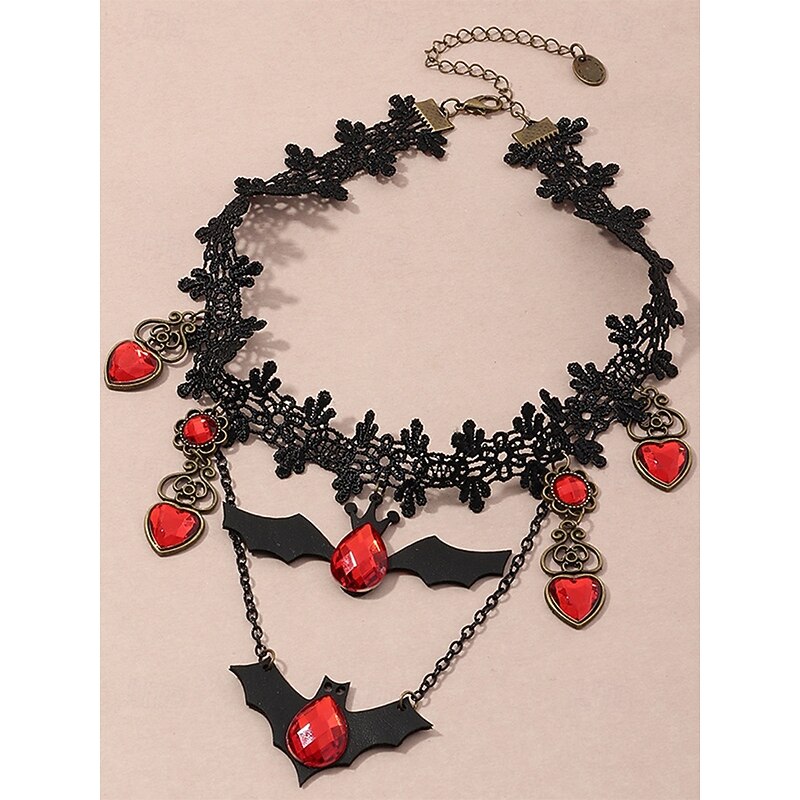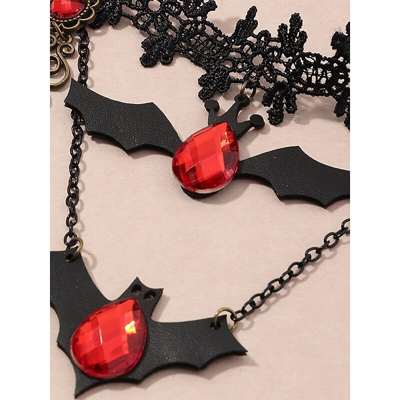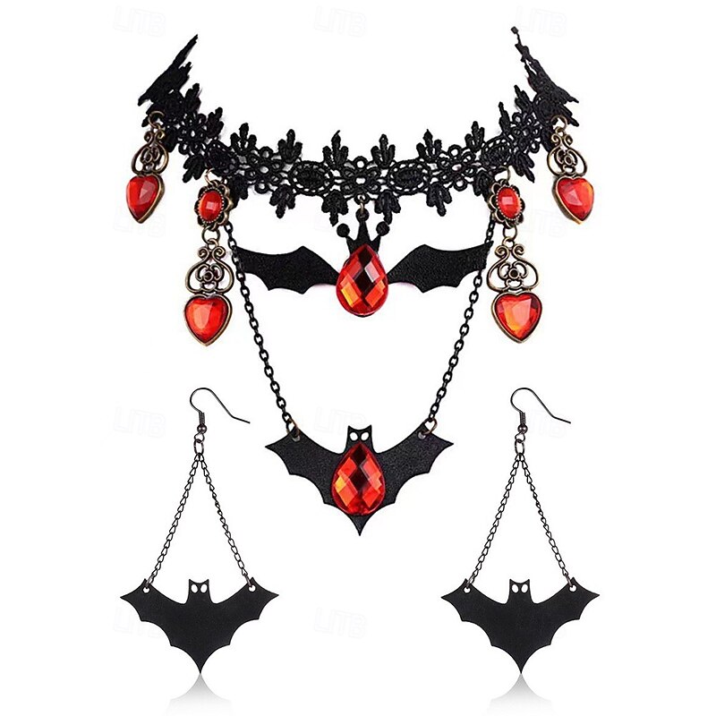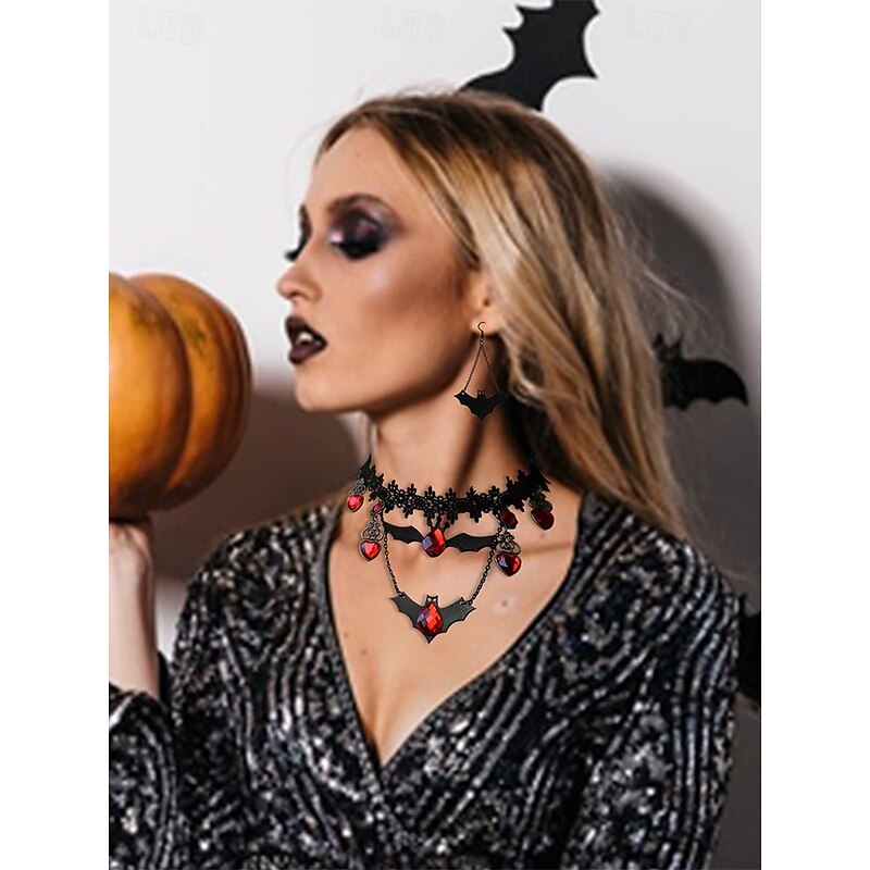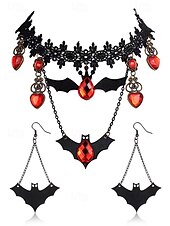 $11.99 - Women's Halloween Bat Necklace and Earrings Set – Black Lace Choker with Red Gemstones and Bat Pendants – Perfect for Halloween Parties and Costumes 2025. Shop for cheap Halloween Accessories online? Buy at lightinthebox.com on sale today!