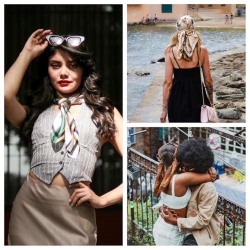 • 【Multi-purpose Head Scarf】Our silk scarf can be used as a head scarf, hair scarf, neck scarf, tie, hand band,handband, purse scarf,bag scarves, belt and so on.With many different beautiful patterns available. pink scarf, blue scarf, black and white scarf, brown scarf, red scarf, womens scarves.