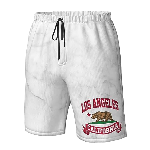 HOT ! HILLBACK California Republic Can Los Angeles Gifts Mens Swim Trunks Quick Dry Swimwear Pockets Swim Shorts with Mesh Lining White-2XL