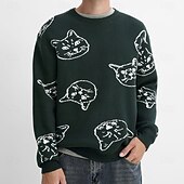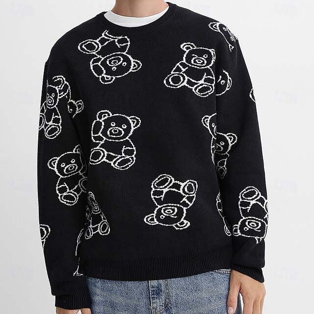 More information about Men's Bear 3D Cartoon Pullover Sweater Jumper Knitwear Crewneck Casual Vacation Home Daily 3D Print Knitting Keep Warm Long Sleeve Spring Fall Winter Black Dark Green