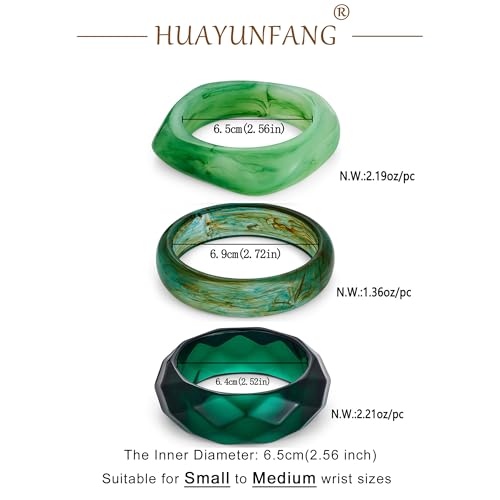 • Unique Acrylic Bangle: This stunning acrylic resin bangle bracelet set features three different green hues with geometric, round, and square shapes. Perfect for making a bold fashion statement, whether worn stacked or solo