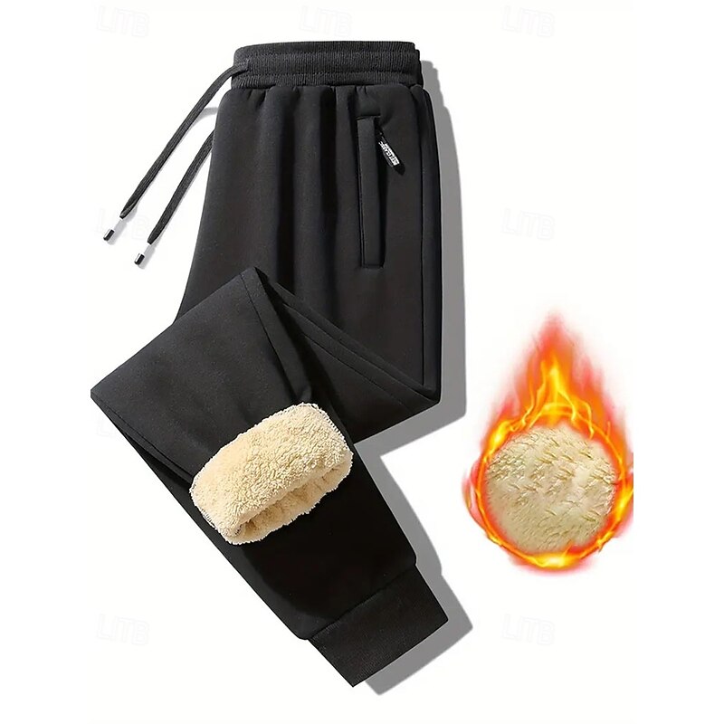 More information about Men's Sherpa Fleece Pants Sweatpants Joggers Trousers Pocket Drawstring Elastic Waist Plain Comfort Warm Sports Outdoor Daily Fashion Casual Black Gray Micro-elastic