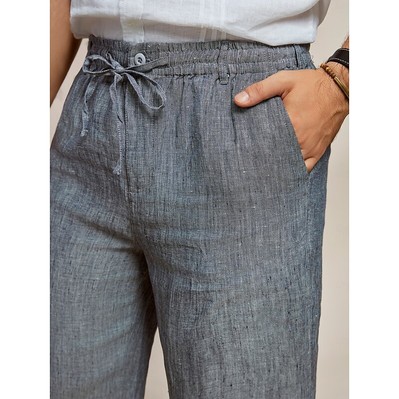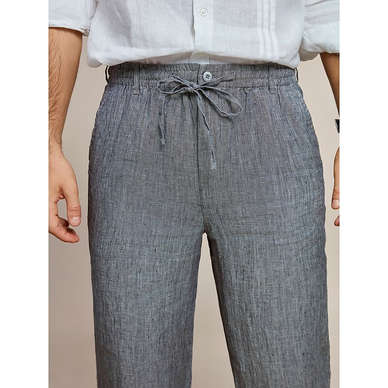 More information about Men's 100% Linen Pants Trousers Casual Pants Drawstring Elastic Waist Straight Leg Plain Comfort Breathable Casual Daily Holiday Fashion Classic Style Dark Gray