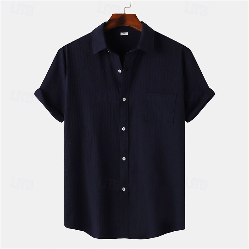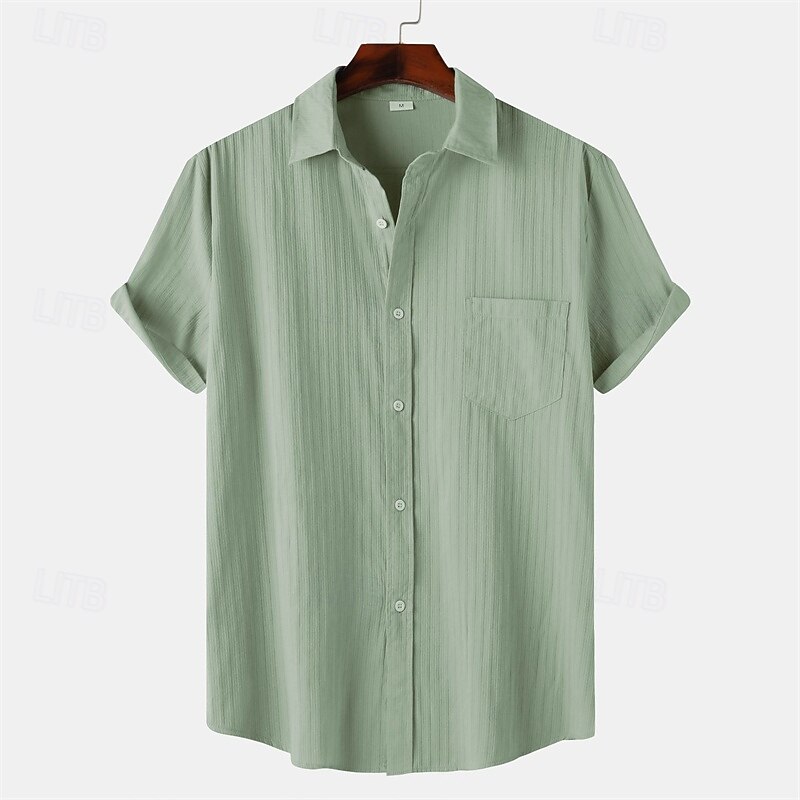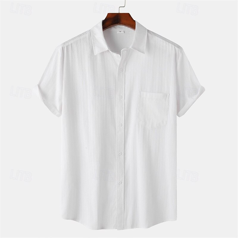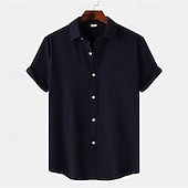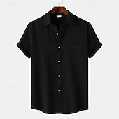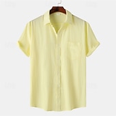 More information about Men's Shirt Casual Shirt Button Up Shirt Plain Vacation Street Black White Yellow Light Green Short Sleeve Lapel Summer Clothing Apparel Button-Down