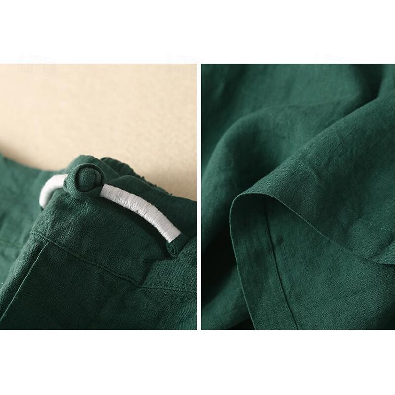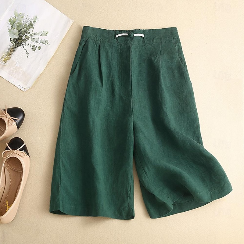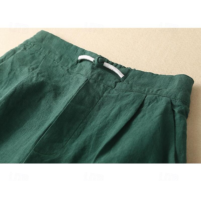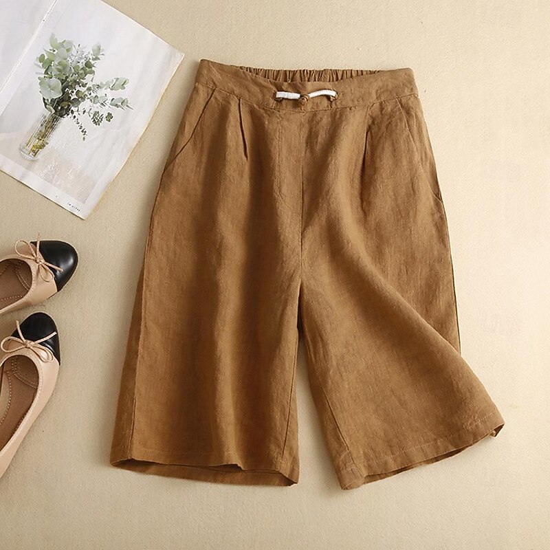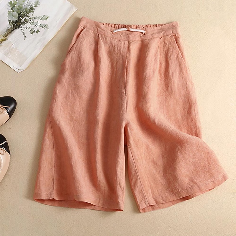 More information about Women's Cotton Linen Shorts Shorts Casual Daily Short Plain Drawstring Side Pockets Breathability Comfortable Inelastic Weekend White Pink Green Khaki Summer Regular Fit