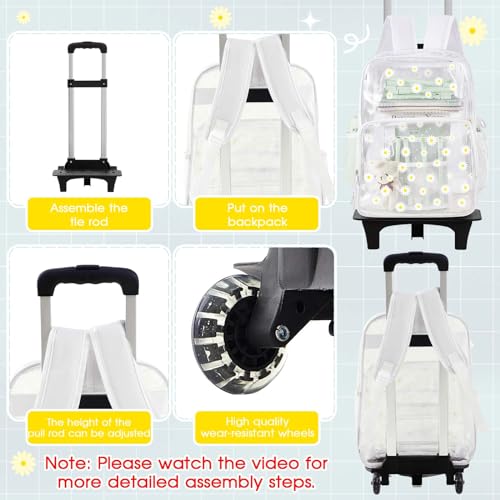 Eccliy 3 Pcs Daisy Rolling Clear Backpack for Girl with Wheels Stadium Approved Backpacks Clear Backpack and Lunch Box 6