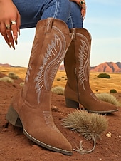 More information about Women's Suede Mid-Calf Cowboy Boots with Embroidered Western Design -Chic Urban Fashion Footwear for Trendy Outfits