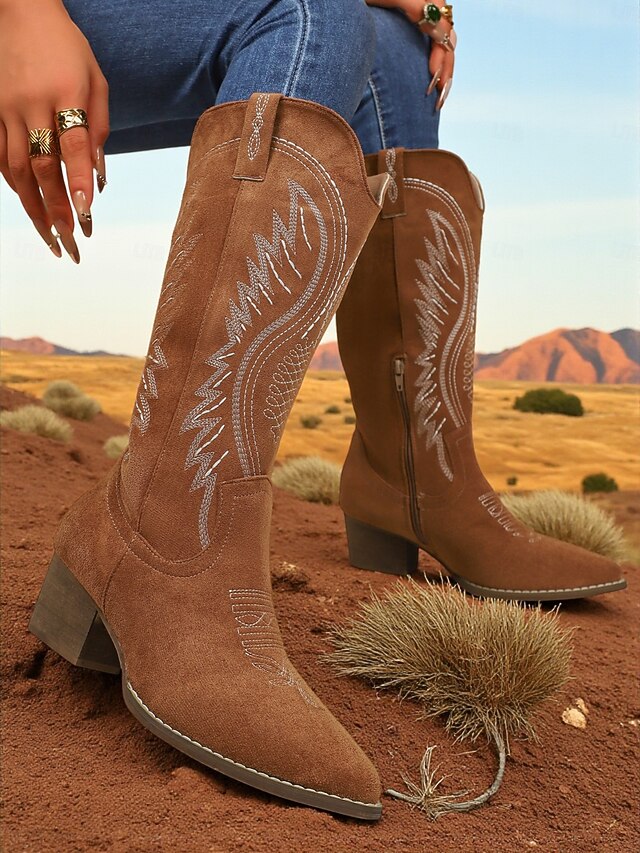 HOT ! Women's Suede Mid-Calf Cowboy Boots with Embroidered Western Design -Chic Urban Fashion Footwear for Trendy Outfits