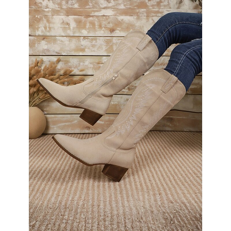 Women's Suede Mid-Calf Cowboy Boots with Embroidered Western Design -Chic Urban Fashion Footwear for Trendy Outfits 4