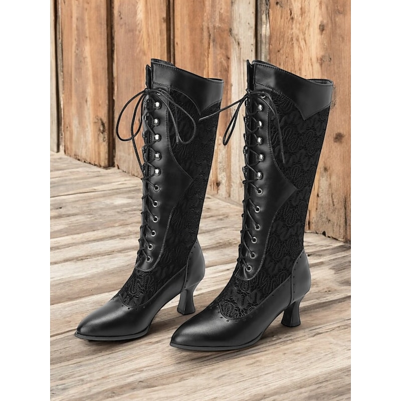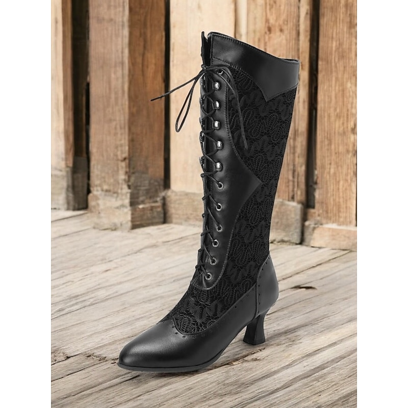 Women's Victorian Lace-Up Mid-Calf Boots – Faux Leather & Lace Steampunk Gothic Costume Shoes for Cosplay, Parties & Special Occasions 1