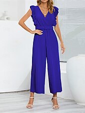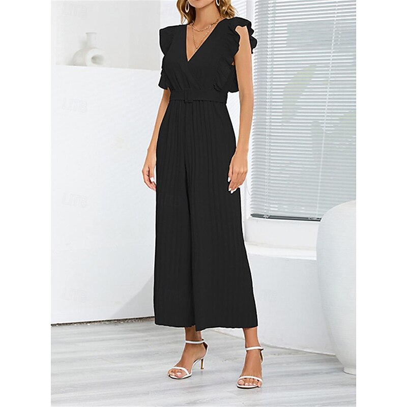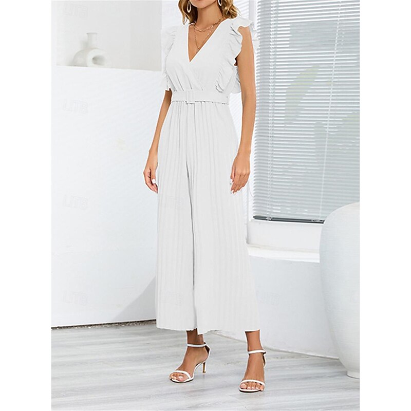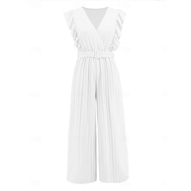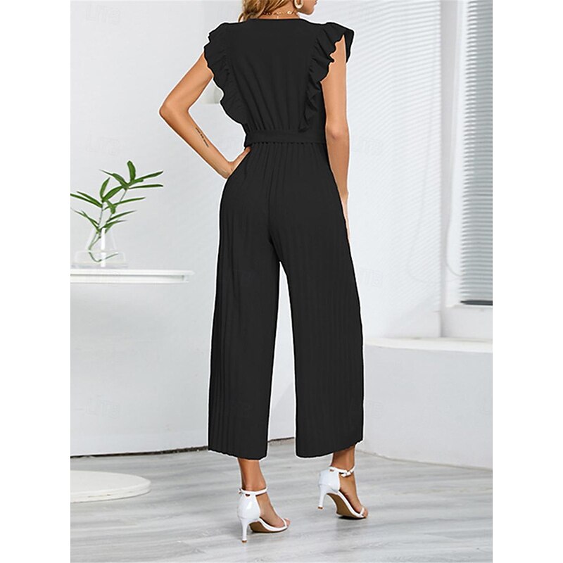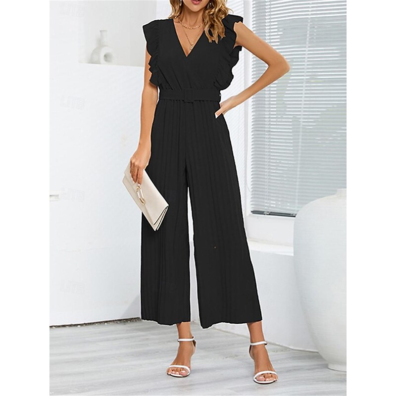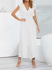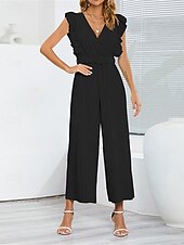 More information about Women's Normal Jumpsuit Elegant Solid Color Sleeveless V Neck Ruffle High Waist Street Daily Regular Fit Black White Blue Summer