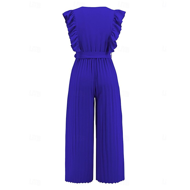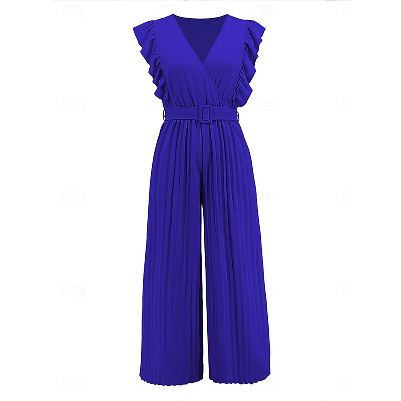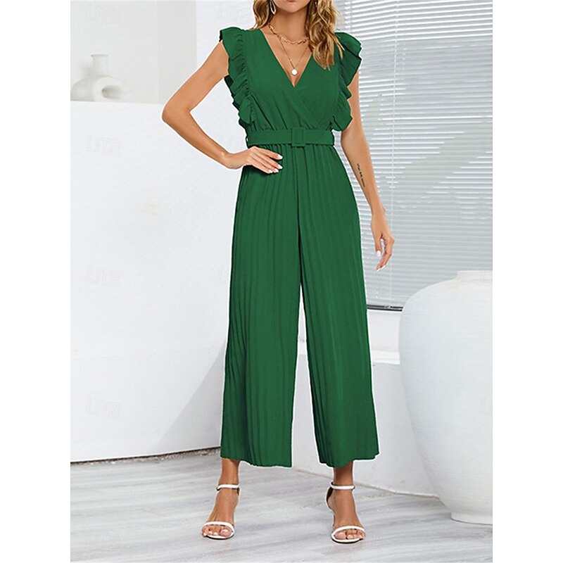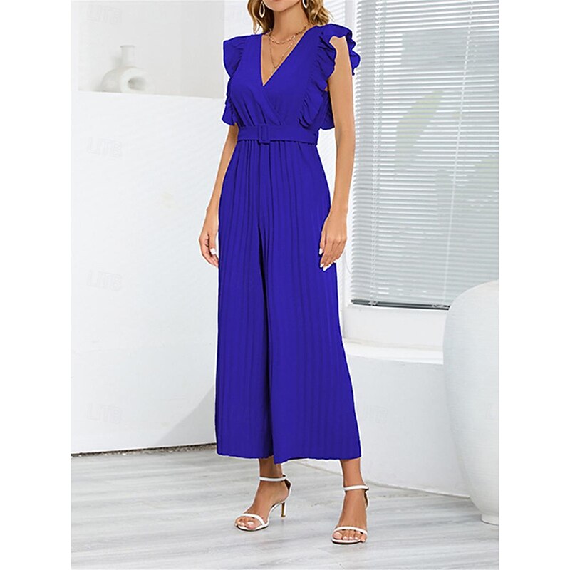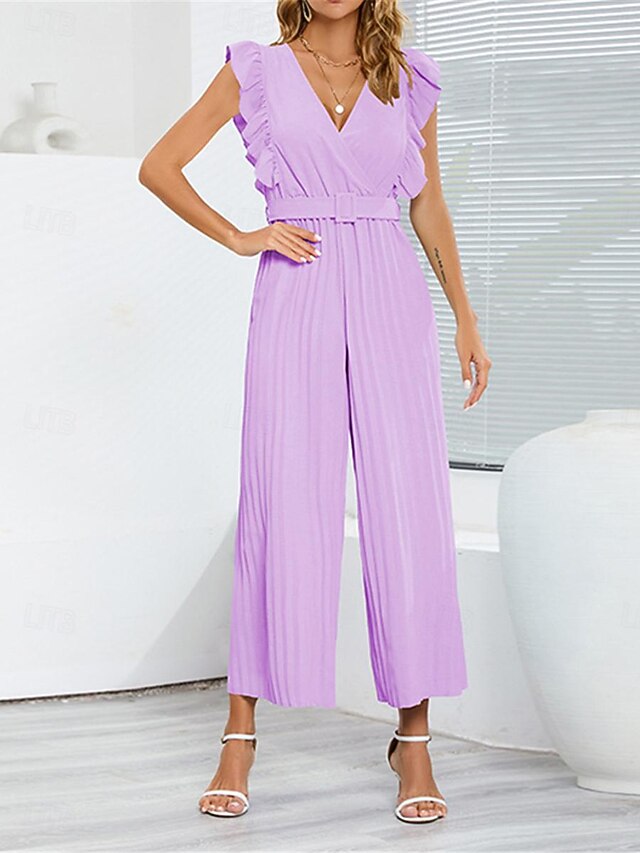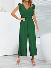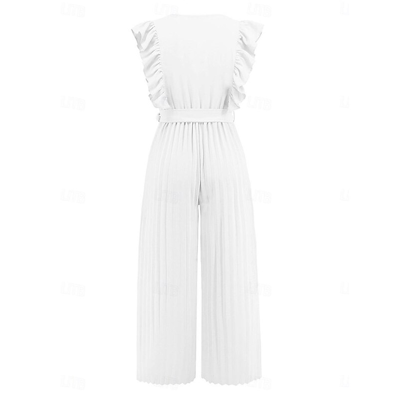 More information about Women's Normal Jumpsuit Elegant Solid Color Sleeveless V Neck Ruffle High Waist Street Daily Regular Fit Black White Blue Summer