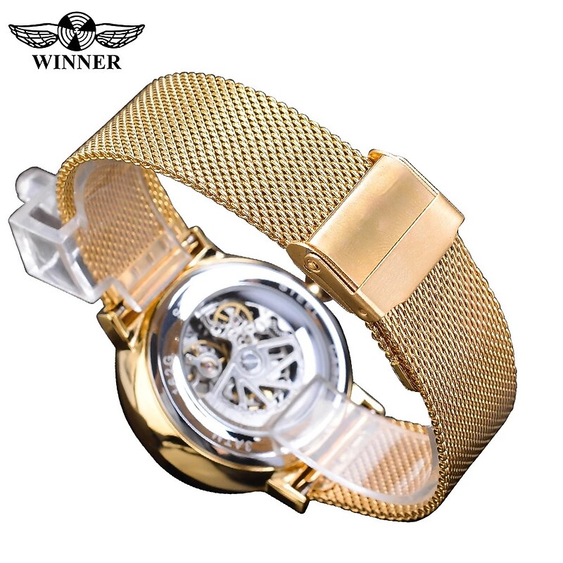 WINNER Men Mechanical Watch Luxury Large Dial Fashion Business Hollow Skeleton Automatic Self-winding Luminous Stainless Steel Watch 9