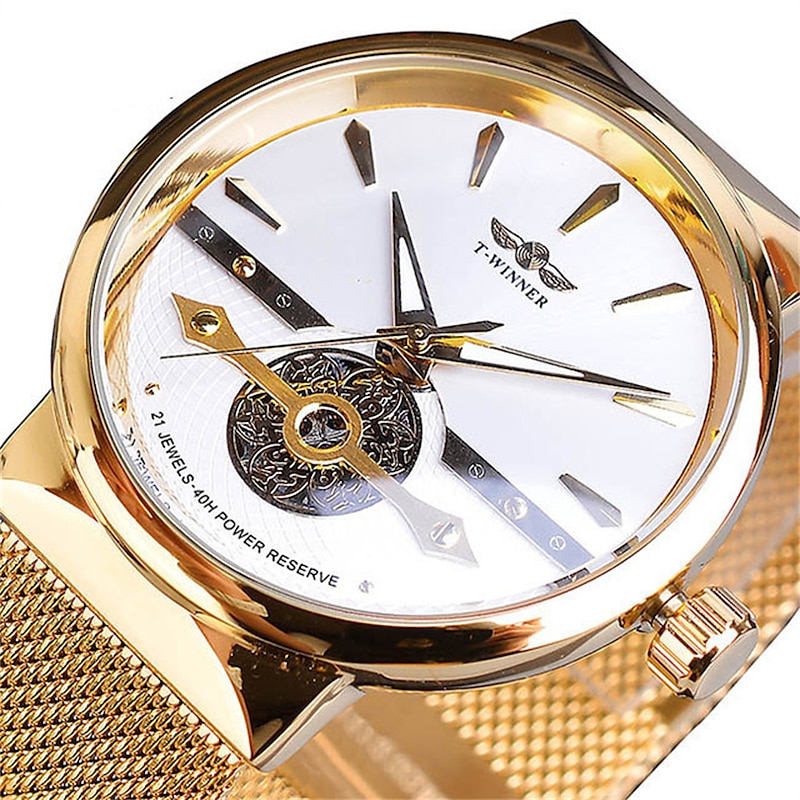 WINNER Men Mechanical Watch Luxury Large Dial Fashion Business Hollow Skeleton Automatic Self-winding Luminous Stainless Steel Watch 14