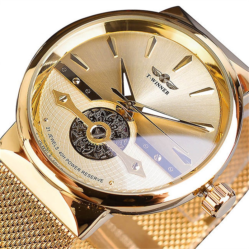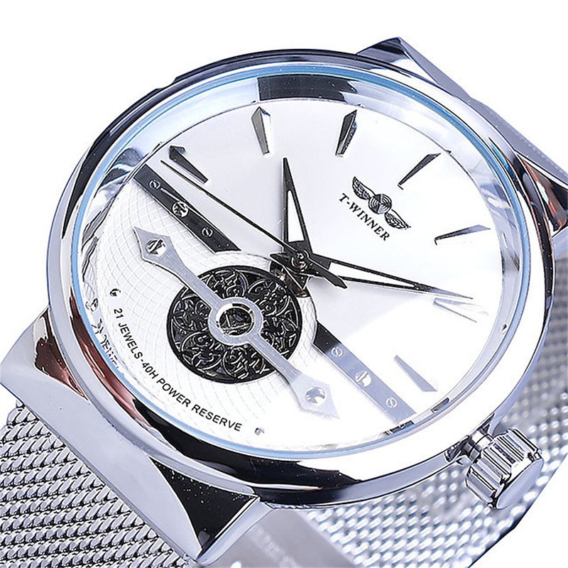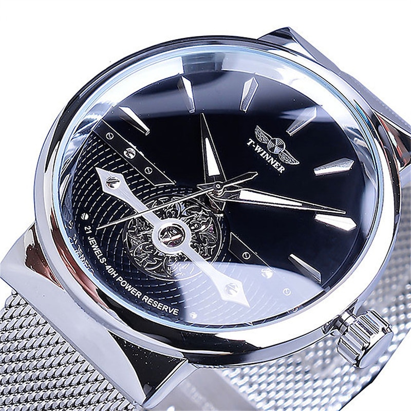 WINNER Men Mechanical Watch Luxury Large Dial Fashion Business Hollow Skeleton Automatic Self-winding Luminous Stainless Steel Watch 20