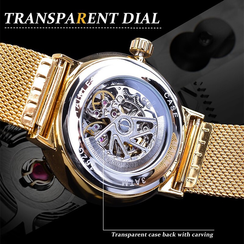 More information about WINNER Men Mechanical Watch Luxury Large Dial Fashion Business Hollow Skeleton Automatic Self-winding Luminous Stainless Steel Watch