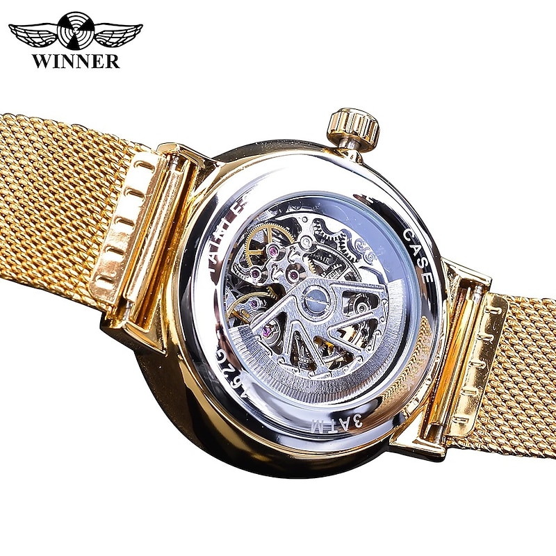 WINNER Men Mechanical Watch Luxury Large Dial Fashion Business Hollow Skeleton Automatic Self-winding Luminous Stainless Steel Watch 10