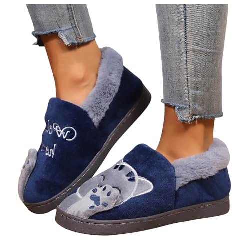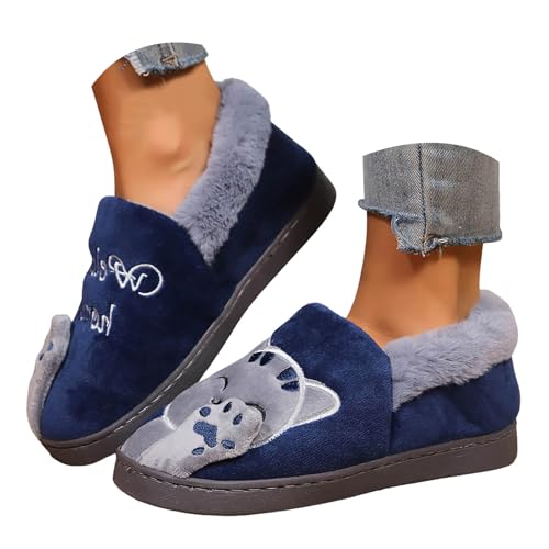 Ladies Cute Cat Animal Plush Slip On Full Slippers Winter Warm Bedroom Cozy Shoes Non-Slip House Slippers for Women Men Cartoon Home Soft Comfortable Fuzzy Slipper Indoor Outdoor Shoes 6