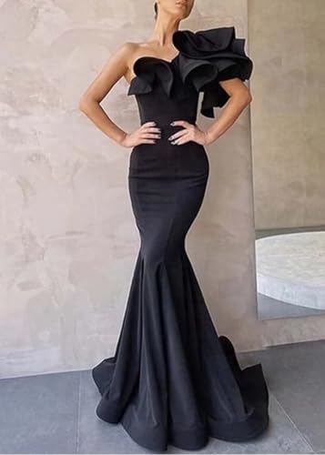 • 【Feature】: One shoulder satin mermaid prom dresses,long tight formal evening dresses for women,petite/plus siz,one-shoulder neckline with large ruffles,sleeveless,drawstring(adjustable strap),floor length,with train.Fully lined, built-in bra.