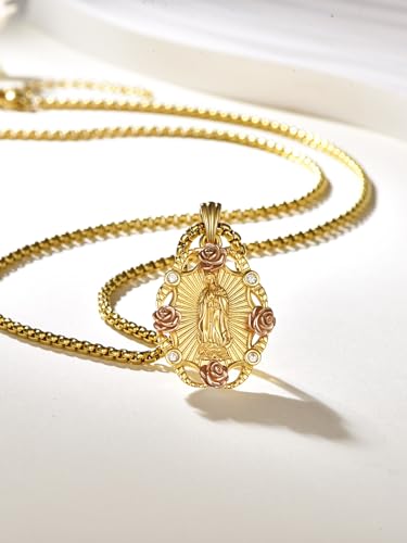AENEAS Virgin Mary Necklace for Women Gold Filled Sterling Silver Our Lady of Guadalupe Pendant Rose Flower Miraculous Medal Jewelry Gift for Mom Wife 4