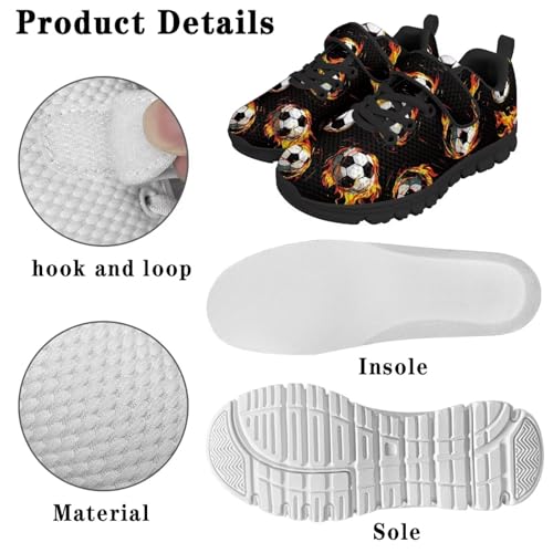 Little Kid Shoes for Boys & Girls Breathable Tennis Running Sneakers for Kids Fire Soccer Pattern 4