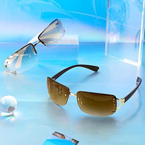 • Suitable for all occasions and seasons: Perfect for men and women walking, shopping, traveling, photoshooting and year-round wear, you'll be the center of attention with these 2000s rimless rectangle sunglasses. It is also a must-have fashion item for street photographers.