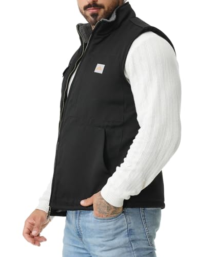 HOT ! Men's Loose Fit Washed Duck Fleece-Lined Waterproof Workwear Mock-Neck Vest
