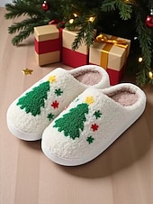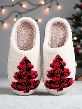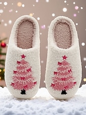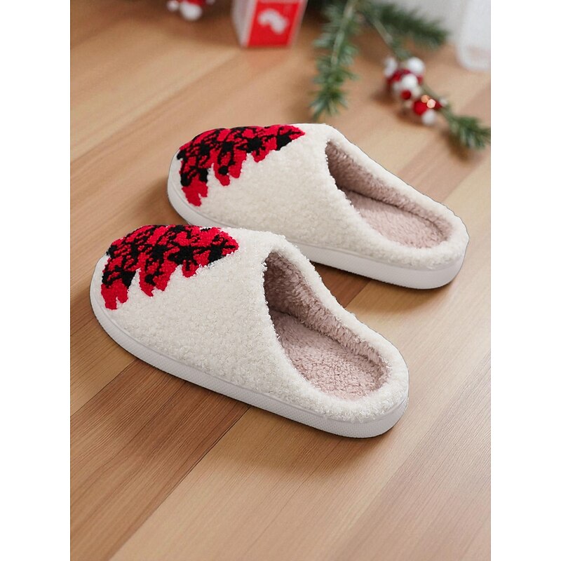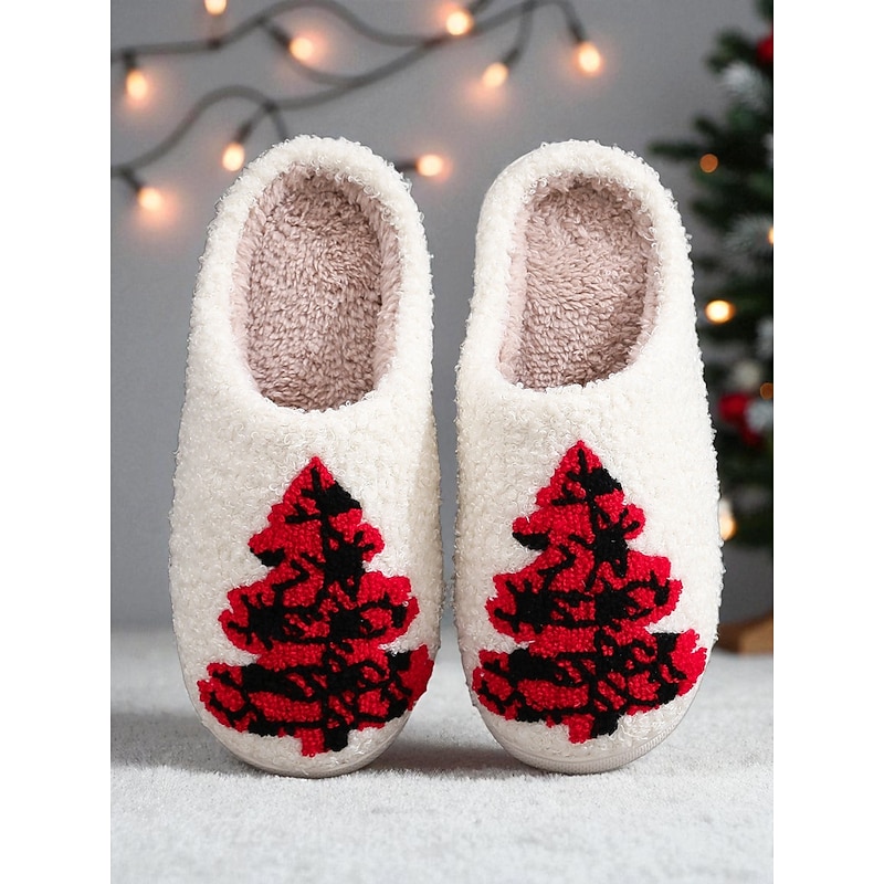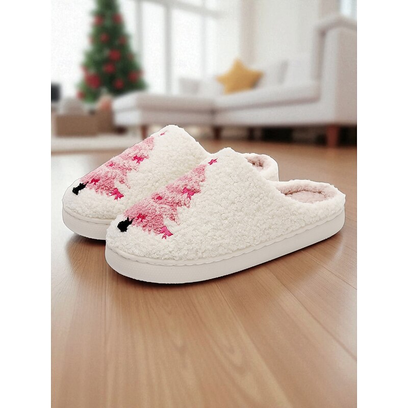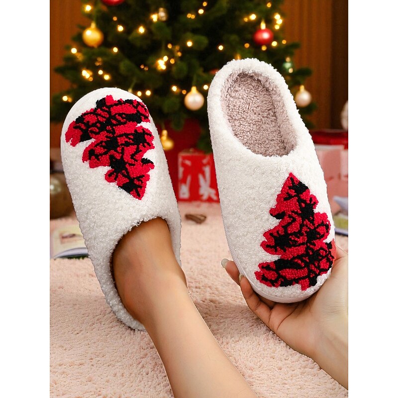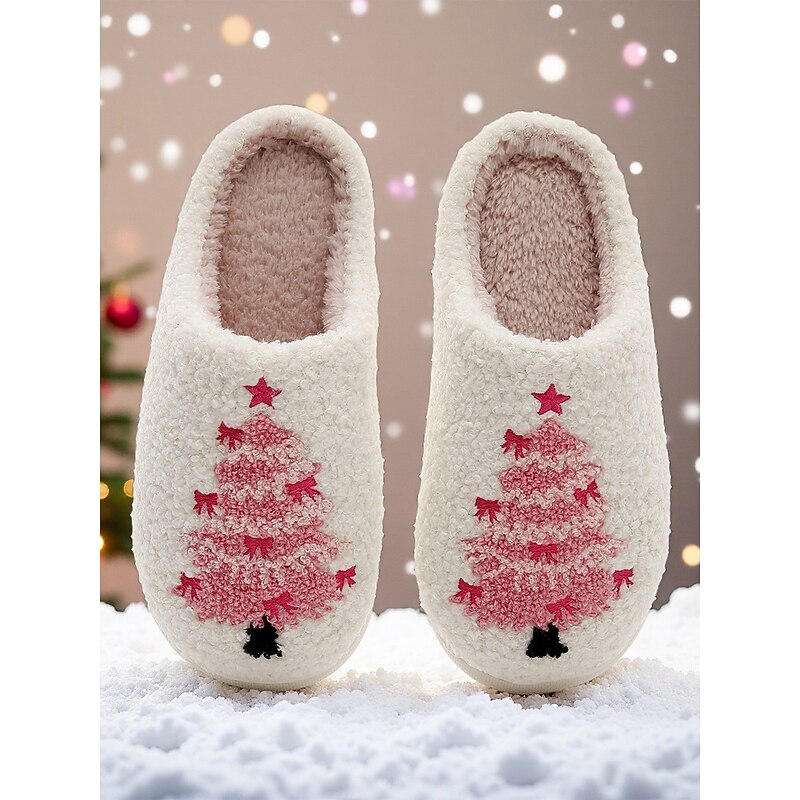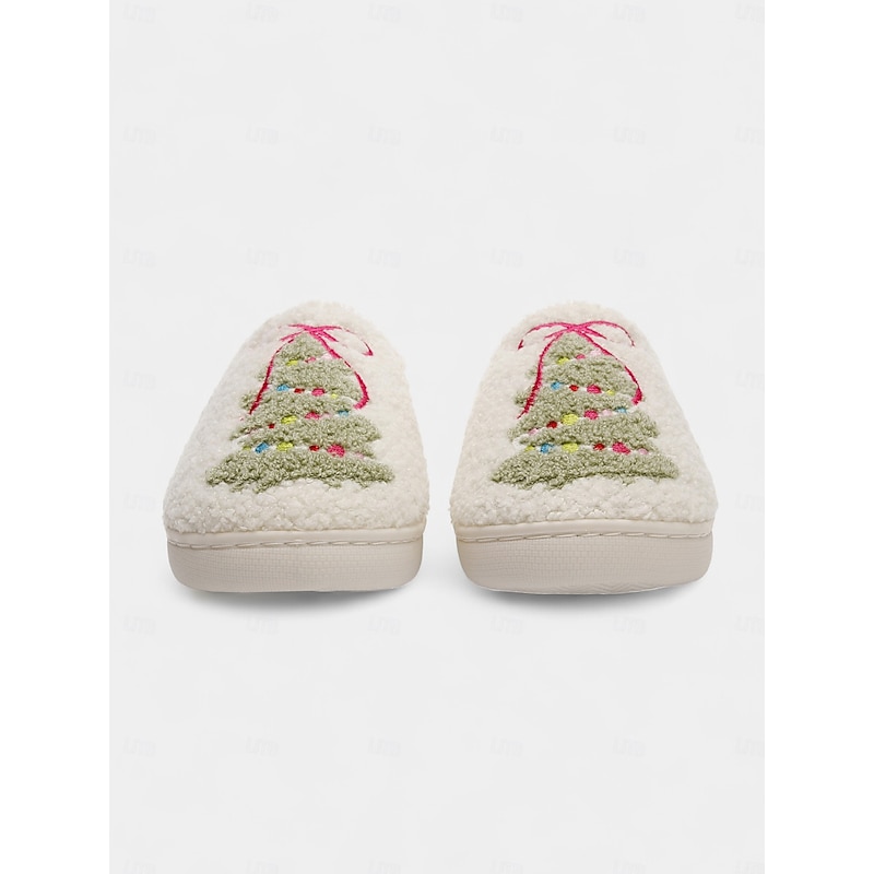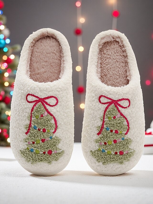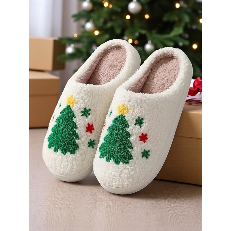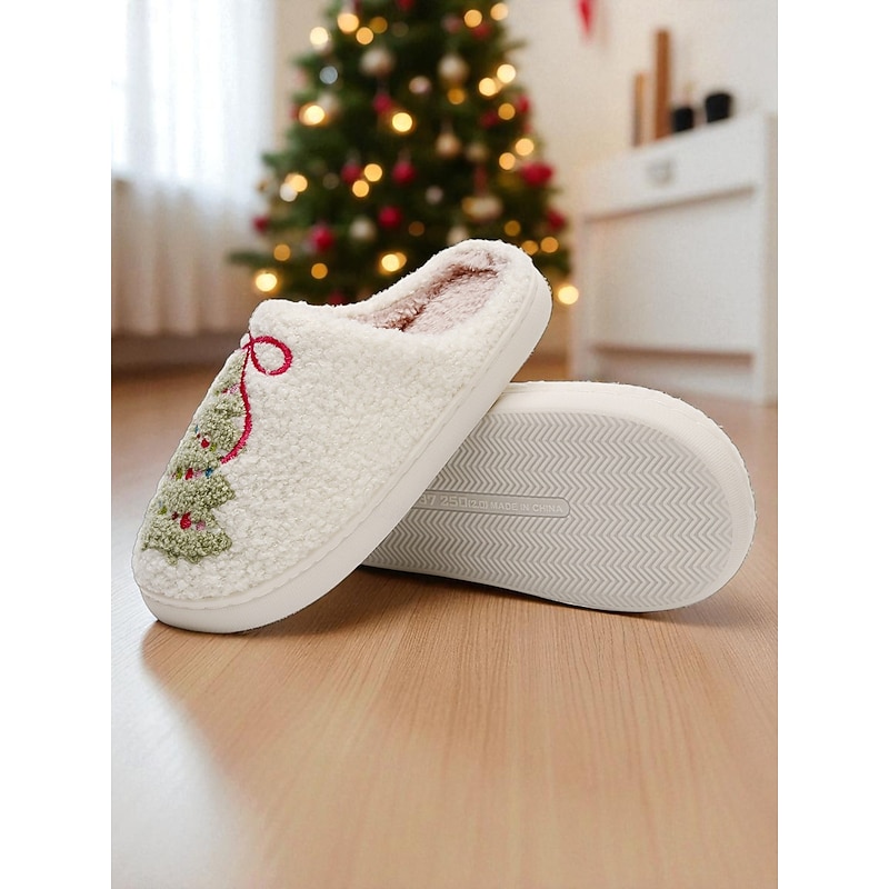 HOT ! Women's White Christmas Tree Slippers with Plush Lining, Cozy Winter House Shoes for Holiday Party & Gift Giving