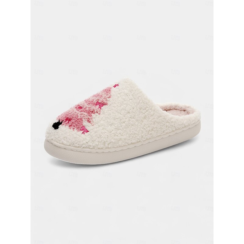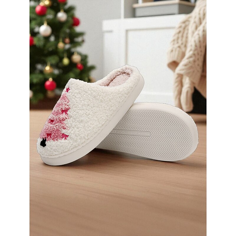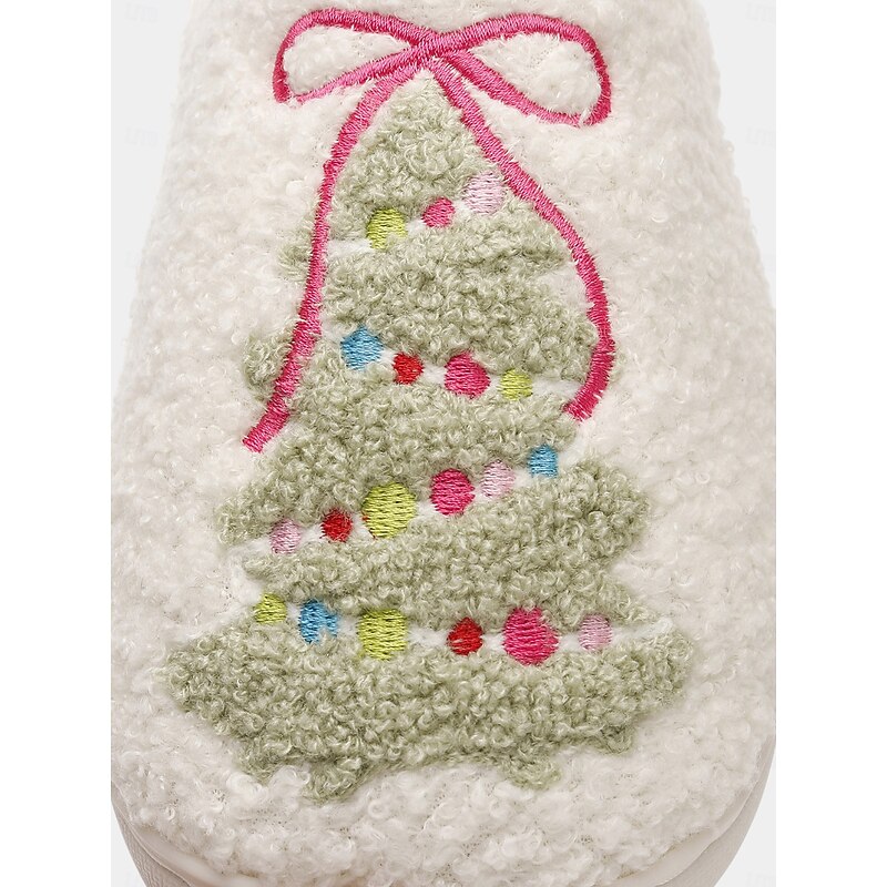 Women's White Christmas Tree Slippers with Plush Lining, Cozy Winter House Shoes for Holiday Party & Gift Giving 24