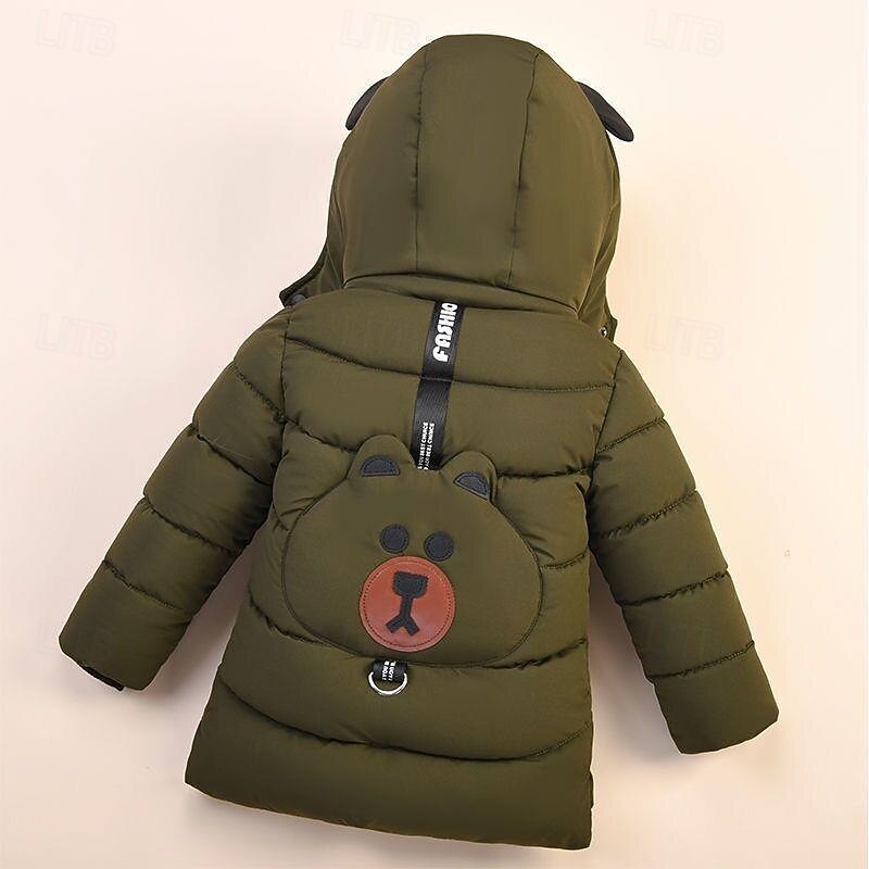Kids Boys' Down Coat Hoodie Jacket Outerwear Bear Long Sleeve Zipper Pocket Coat Casual Adorable Daily Black Yellow Army Green Winter 4 years+ 1