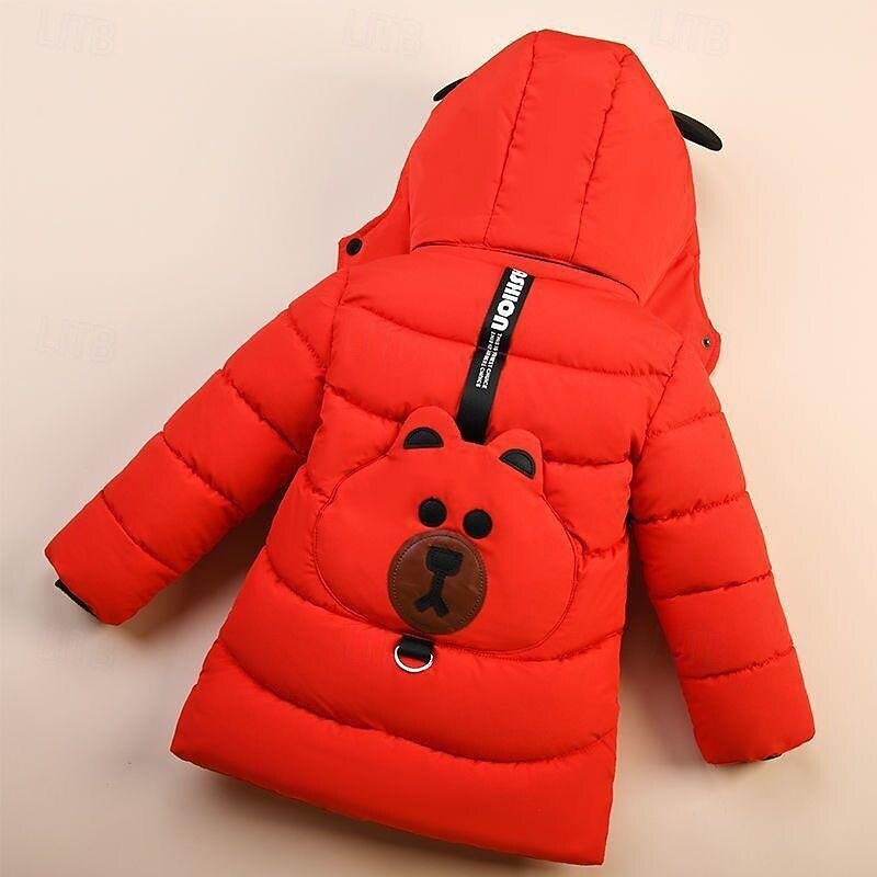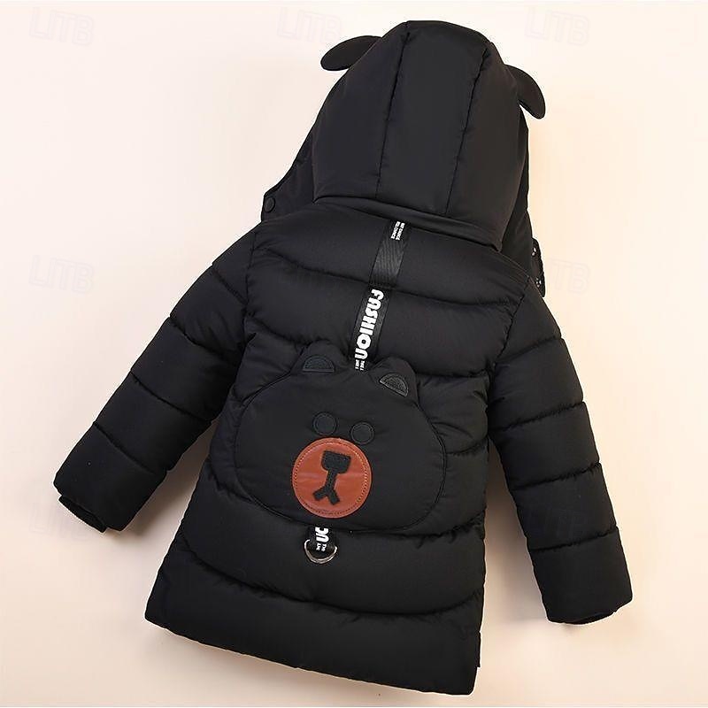 More information about Kids Boys' Down Coat Hoodie Jacket Outerwear Bear Long Sleeve Zipper Pocket Coat Casual Adorable Daily Black Yellow Army Green Winter 4 years+